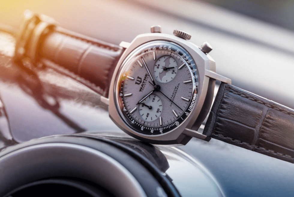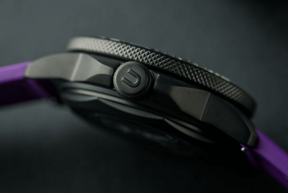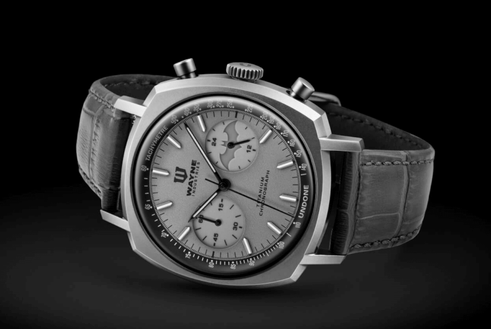 There are two pushers on the right half of the baseband with a fluted crown right in between. UNDONE also ships them inside metal boxes with the hero’s emblem embossed on the cover.