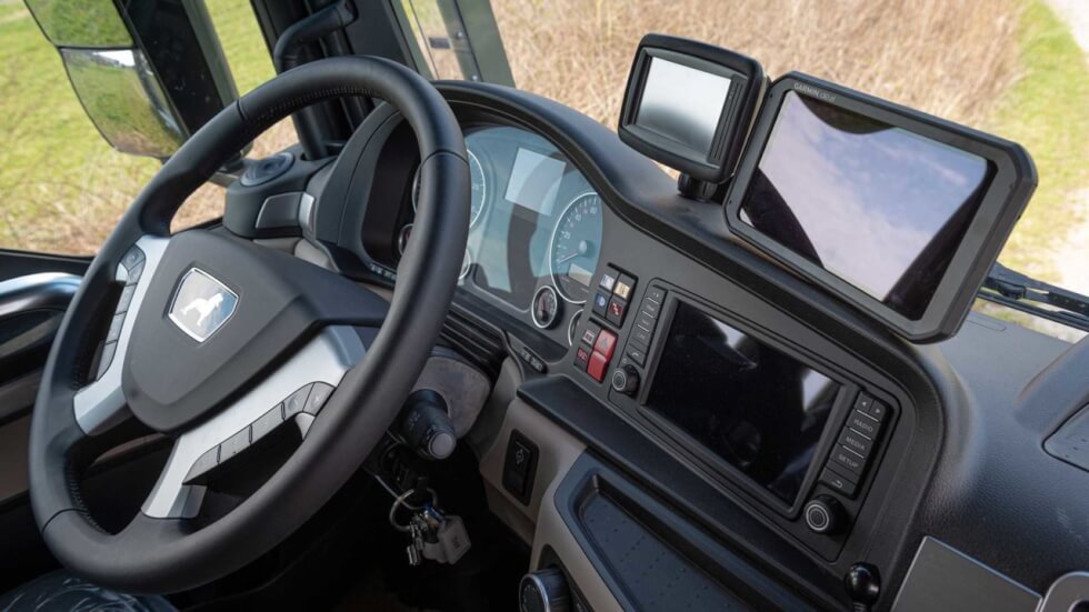 With a fuel capacity of 264 gallons, the Unicat MD56c promises a range of 2,050 miles. In addition to its large battery, the solar panel system allows it to soak up the rays for extra power when you need it. The 540-horsepower engine is paired with a ZF 12-speed TipMatic gearbox. We’ll gladly choose this over any average RV.