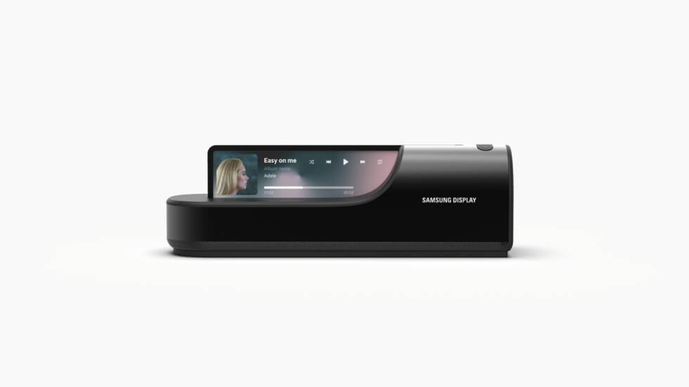 There are no specific details as to what this Samsung gadget is for exactly, but there are enough hints from the design. It appears to be a smart speaker with a built-in rollable display that extends and retracts. We’re not sure if this action is motorized or if you need to manually lift it to engage the locking mechanism.