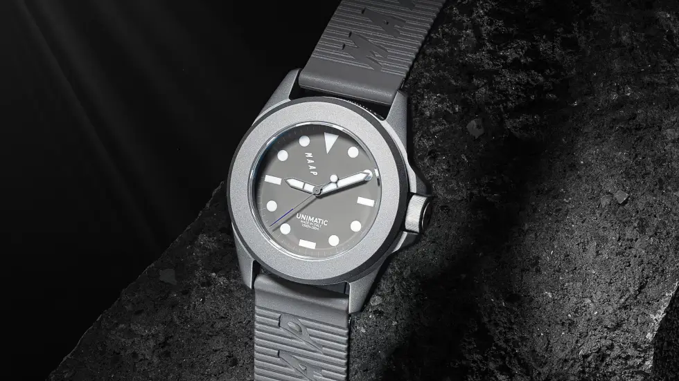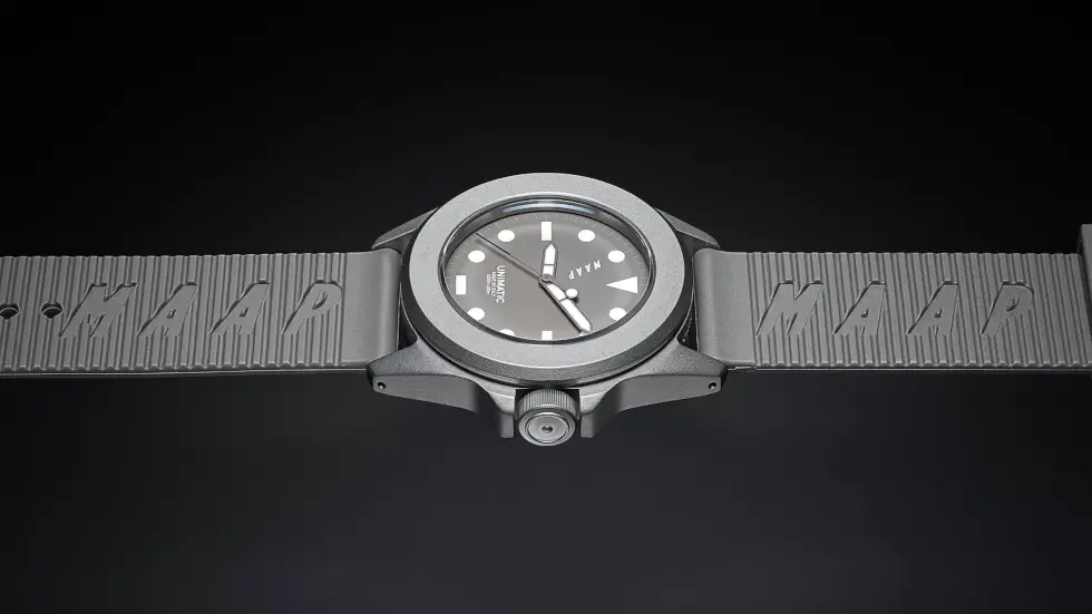 Aside from its understated shade, what makes this limited-edition reference so special are the collaborative efforts between UNIMATIC and MAAP. The latter has been supplying cycling enthusiasts with performance gear, lifestyle products, and accessories tailored to their favorite recreation or sport. The watch we have here embodies that competitive spirit.