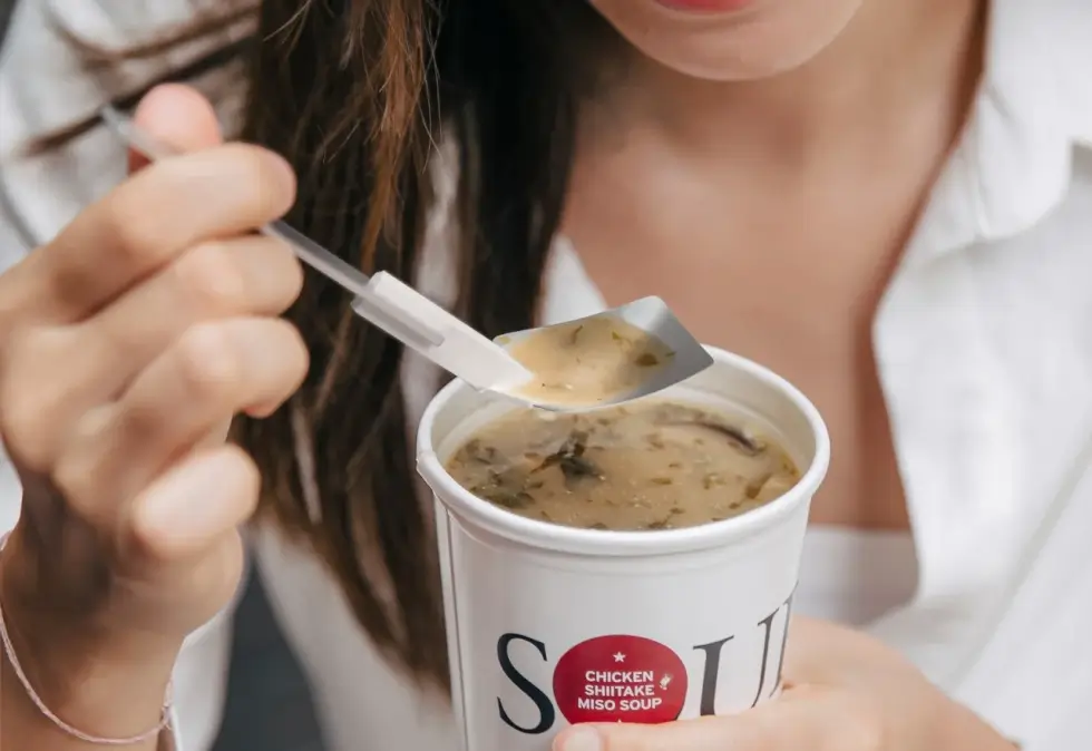 The cutlery is flat but a pinch of their flexible parts bends the spoon and fork into just the right amount of curve to pick up food. Then lock the ergonomic handle in place to keep the curved shape intact for eating. Despite the TPU/TPE material of the handles, it is safe to use on piping hot food as it can handle temperatures as high as 110°C.