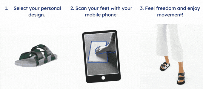 The concept is very convenient and easy to use. A companion mobile configurator lets you select your personal design and then scan your feet with your phone’s camera. The captured data is then used to tailor the footbed to ensure a perfect fit. Your personal shoe soles will be 3D modeled and then 3D printed prior to assembly.