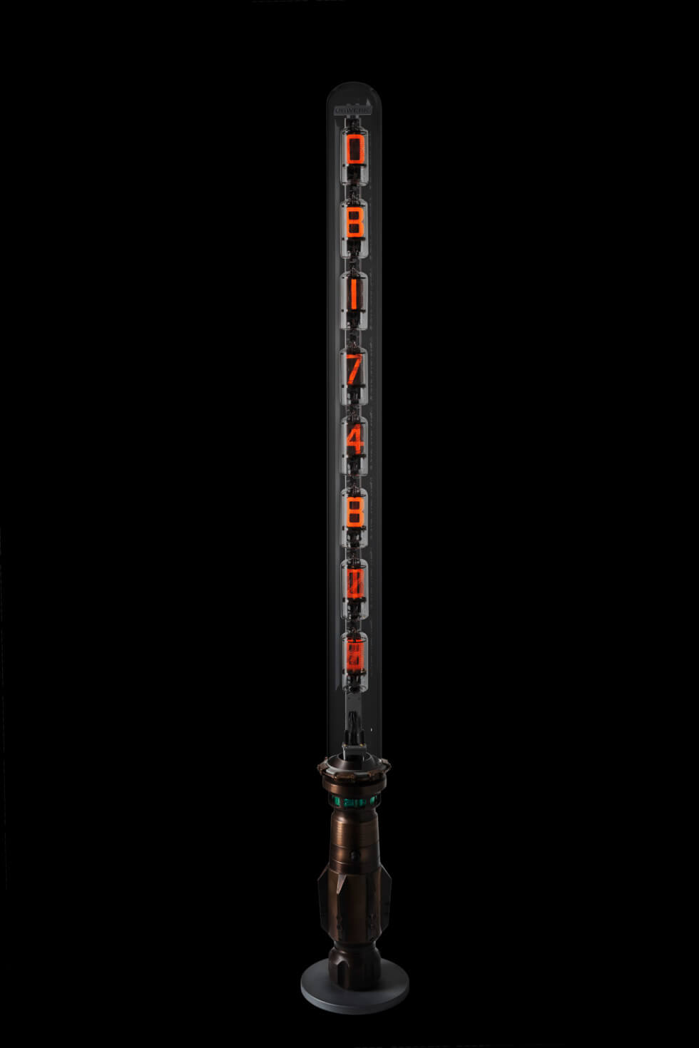 With that out of the way, this bad boy stands a little over five feet and weighs a hefty 44 lbs. The base resembles the hilt of a lightsaber, while the glass tube housing its digital indices represents the energy blade that emanates from the power source below.