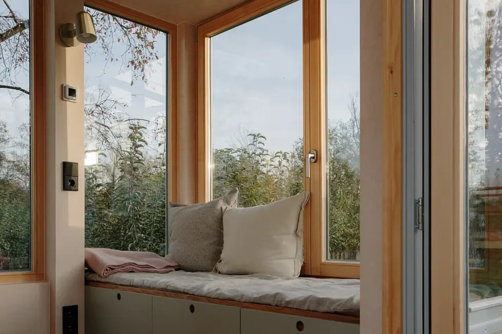 Meanwhile, the Vagabundo Flex stands on a sturdy steel platform and is built around timber wood framing with wood fiber insulation, three-layer fir wood for interior paneling, and double-glazed wood-aluminum windows with laminated safety glass.