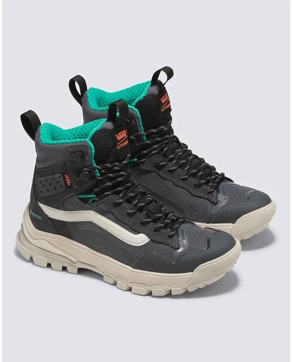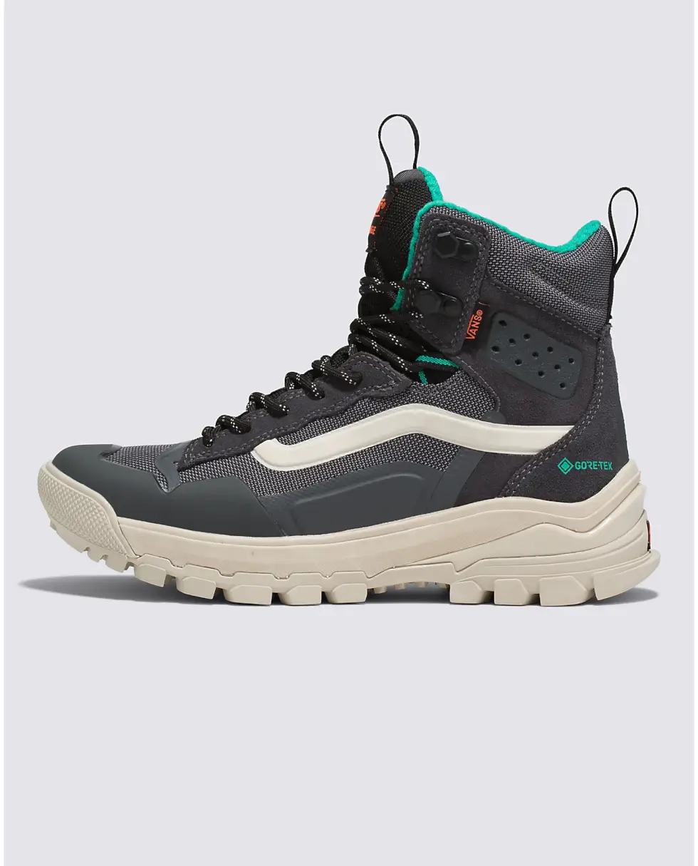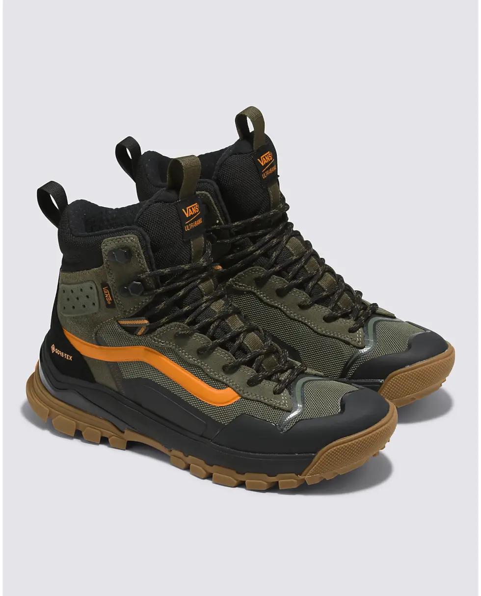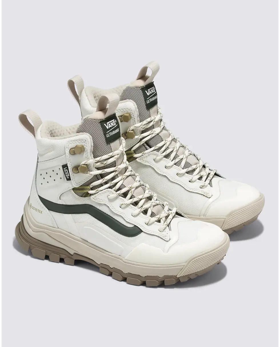 Take each step with confidence and comfort courtesy of the dual-density UltraCush EVA footbed with an Ortholite cover. The UltraRange EXO Hi Gore-Tex MTE-3 also benefits from the molded TPU toe cap and additional heel protection. Vans offers these kicks in five colorways: Olive/Black, Khaki/Gum, Gray/Multi, Vintage White, and Black/Gold.