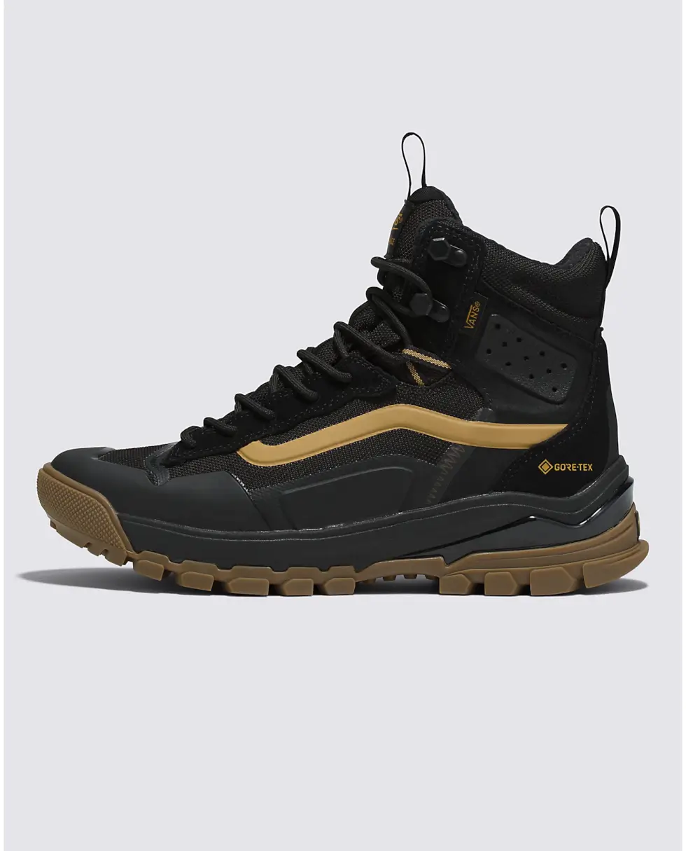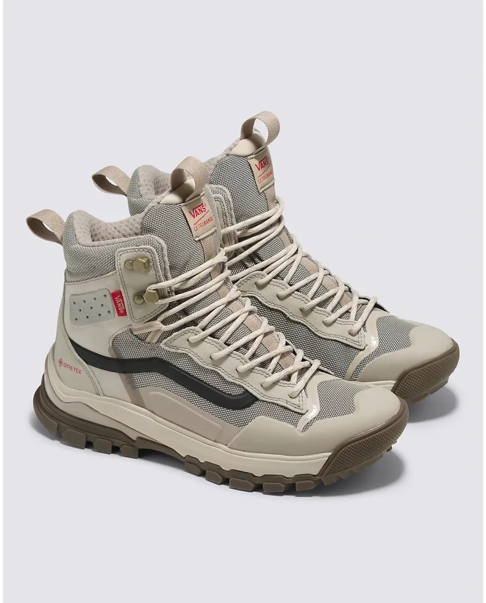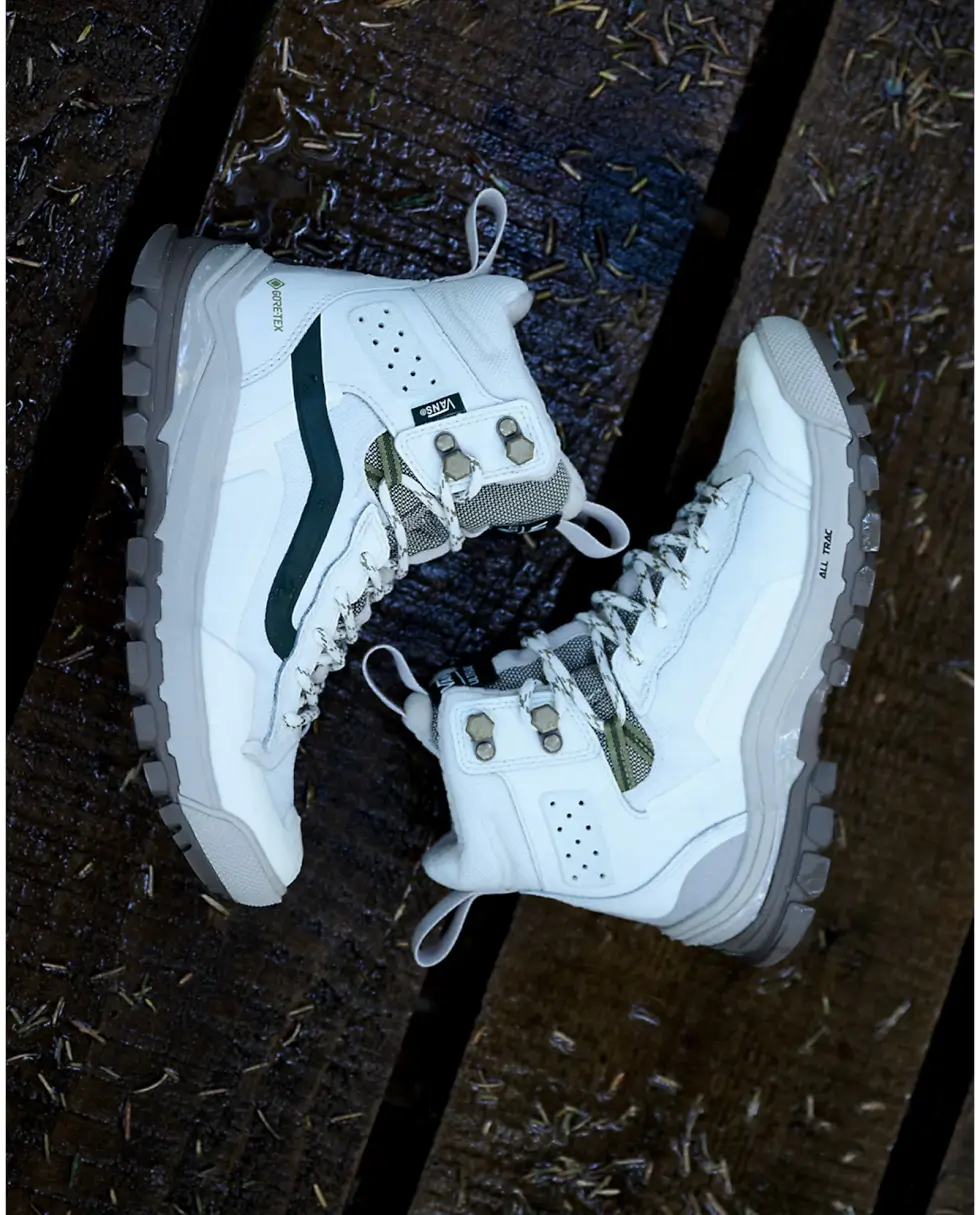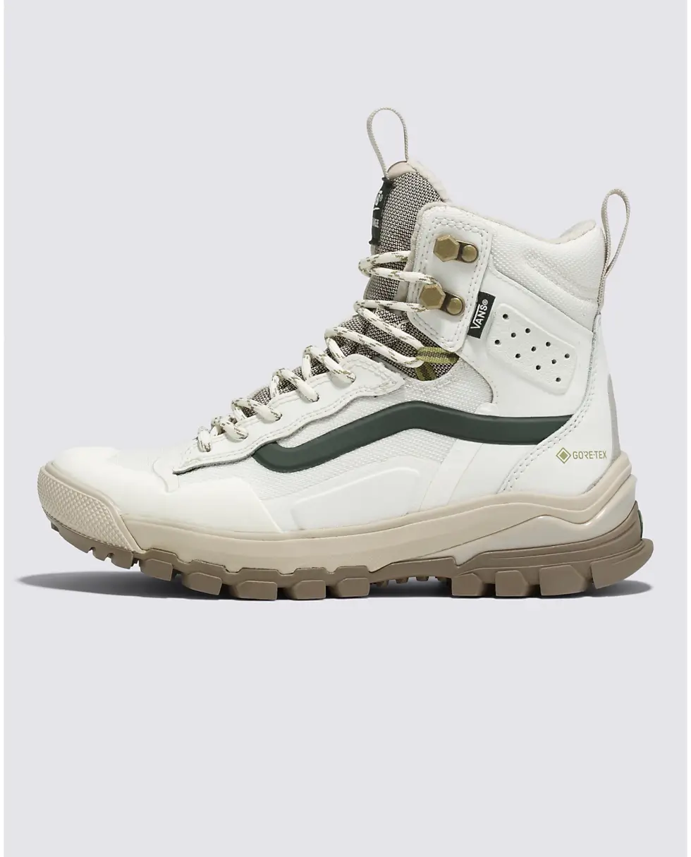 Take each step with confidence and comfort courtesy of the dual-density UltraCush EVA footbed with an Ortholite cover. The UltraRange EXO Hi Gore-Tex MTE-3 also benefits from the molded TPU toe cap and additional heel protection. Vans offers these kicks in five colorways: Olive/Black, Khaki/Gum, Gray/Multi, Vintage White, and Black/Gold.