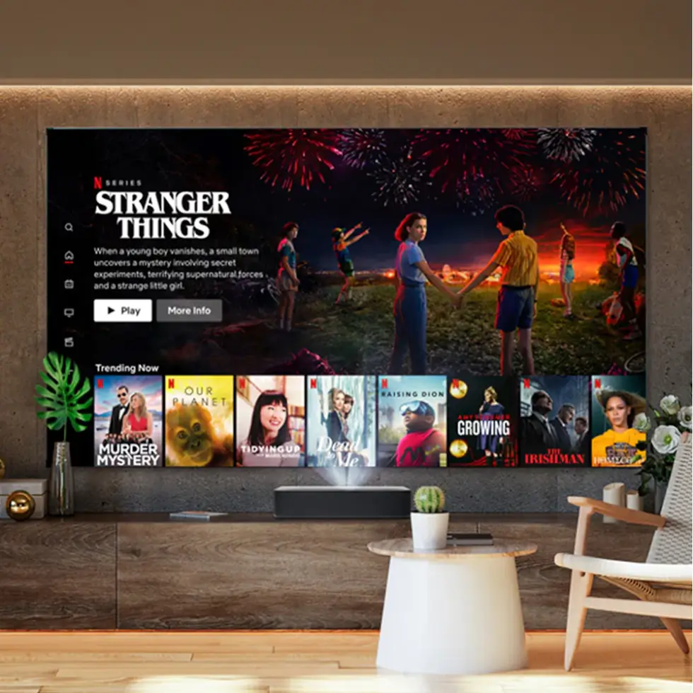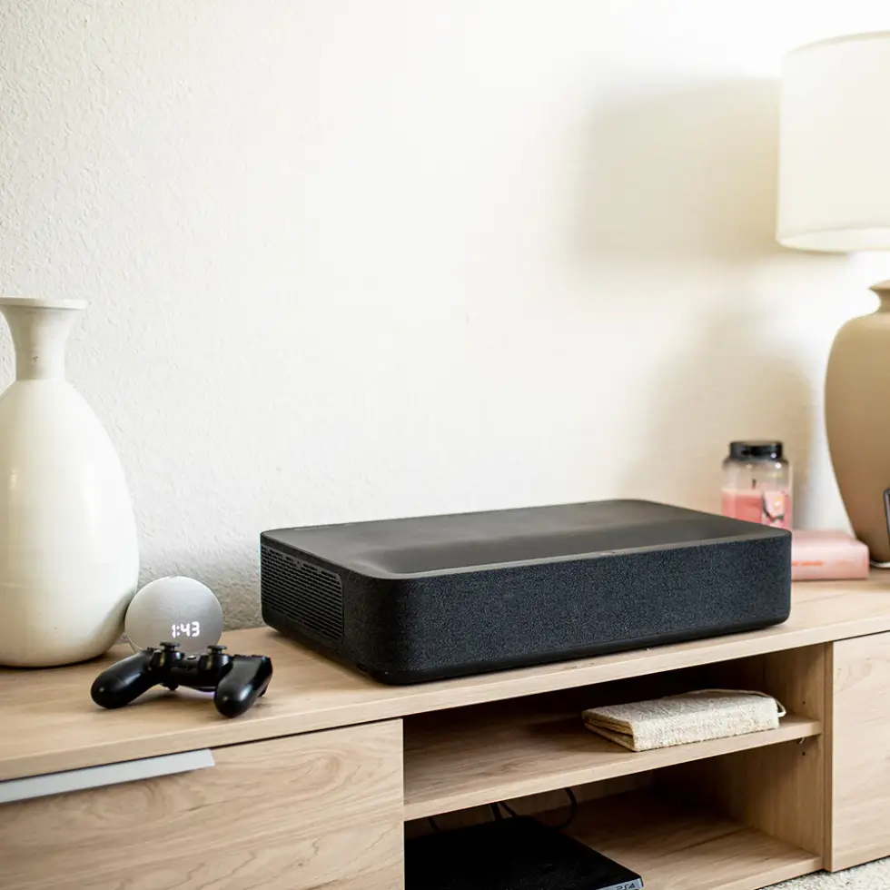 Thus, VAVA’s ultra short throw laser projector is far from obsolete with its compatibility with the ubiquitous 3840 x 2160 format. The VA-LT002 is the optimal entertainment solution for rooms with limited floor space. You can position it as close as 7.2 inches away from the wall and still achieve images between 80 to 150 inches depending on placement distance.
