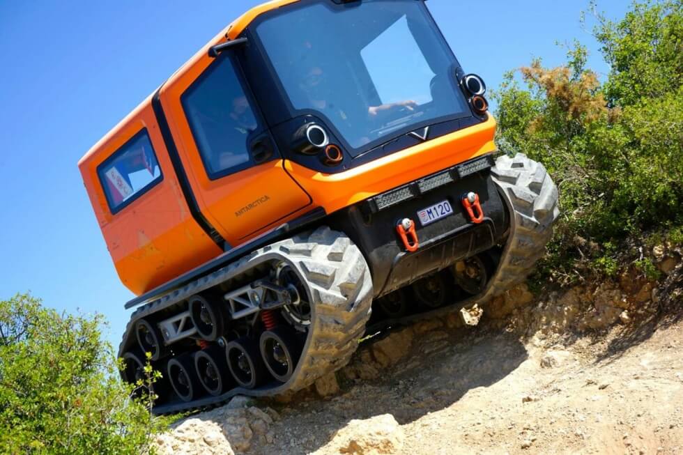 The photovoltaic cells on the roof tell us it can recharge via sunlight on top of the normal method. The range is approximately 31.1 miles with a top speed of 15.53 mph. The Antarctica can also remain operational even at temperatures as low as -22 Fahrenheit.