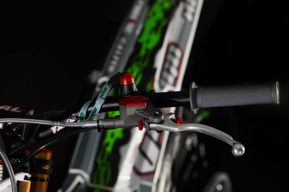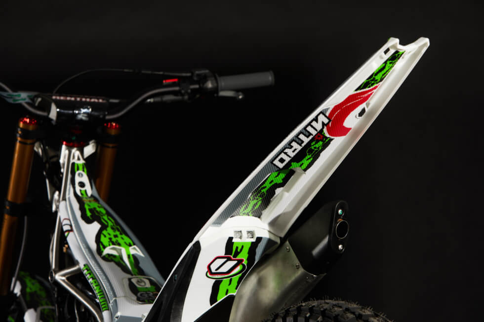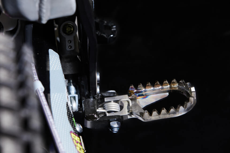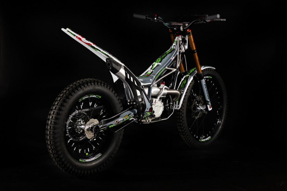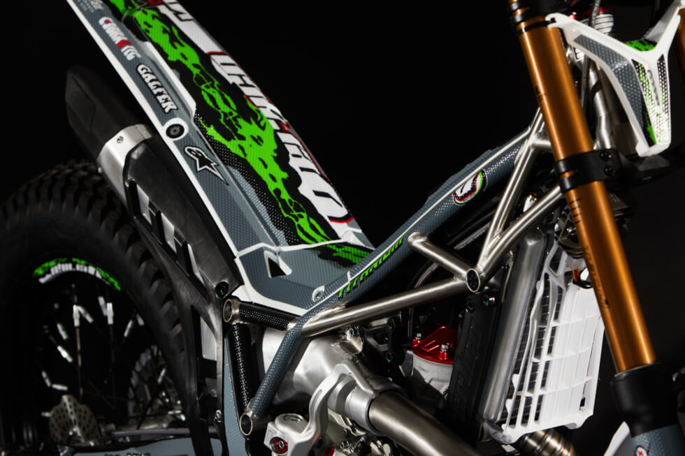 Other weight-saving upgrades include carbon fiber engine caps and a 6 mm 7075 aluminum Costa Parts crankcase protector. It also flaunts snakeskin vinyl wraps that protect most of its parts from abrasions during trials. These also come with liveries for a striking aesthetic overall.