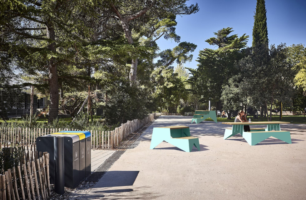As for the steel components, they are hot-dip galvanized which results in a matt grey surface and powder coated for corrosion resistance to give the furniture a minimum lifespan of 80 years. The steel also comes with a lifetime warranty against rust. The STOOP bench series come in over 200 standard RAL classic colors. It is designed for lengthy use in harsh and challenging environments.