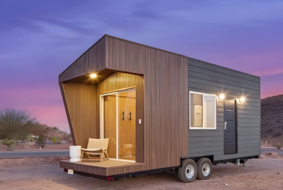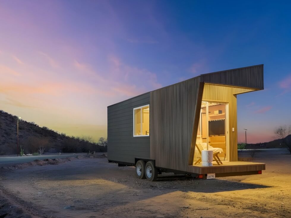 Built on a double-axle trailer, this tiny house feels surprisingly large and cozy the moment you step inside. That’s thanks to its clever space-saving minimalist layout. There are functional spaces neatly integrated into walls, corners, and transitions between spaces while maintaining clean lines.