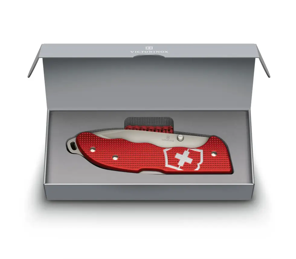 The Evoke Alox Knife boasts a simple yet stylish aesthetic that does not comprise durability. This five-function folder features a lockable silver drop-point blade that offers knife stability and has a removable thumb stud to deploy the blade. This folder shares similarities with the Hunter Pro Alox, which Victorinox dressed in electric yellow for its 2023 Limited Edition Alox Collection. It only has the blade for a utility tool while the rest are carrying options including a carry clip, lanyard hole, and paracord pendant. You get three color options for the handle including Red, Blue-Red, and Silver. It is 5.4″ long and weighs 6.7 ounces.
