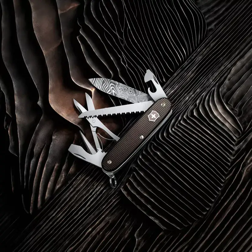 The Victorinox Farmer X Alox Damast Limited Edition 2024 is a standout piece. It’s meticulously crafted with precision and discerning attention to detail. Its main blade presents one of the key features of this multi-tool. It has a unique “Hakkapella” pattern courtesy of using 115 layers of Damasteel.