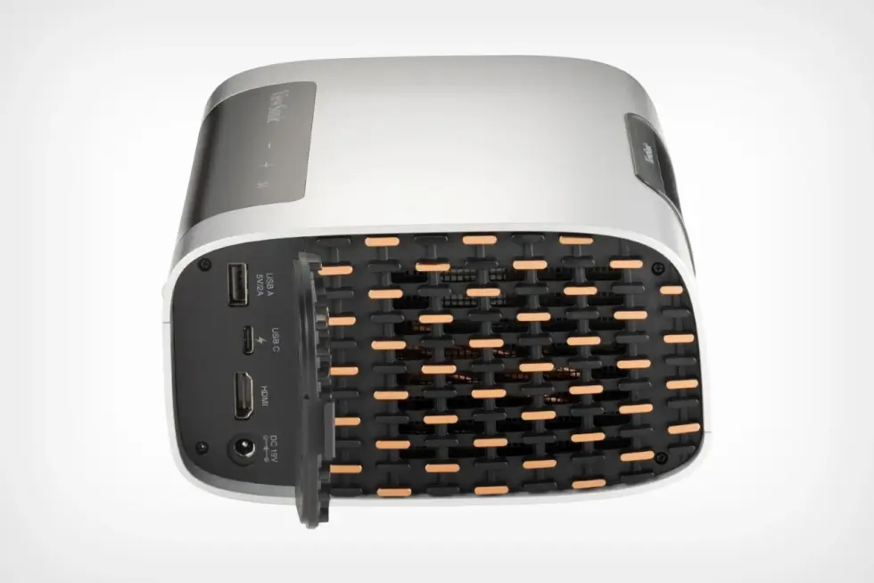 Even the most snobby of cinephiles can’t ignore its claims of a 100% BT.2020 wide color gamut accuracy. ViewSonic also notes that the M10’s lamp-free system is rated to last up to 30,000 hours, which closely matches the longevity of high-end LED projectors. It measures 202 mm x 165 mm x 92 mm and weighs approximately 2.99 lbs.