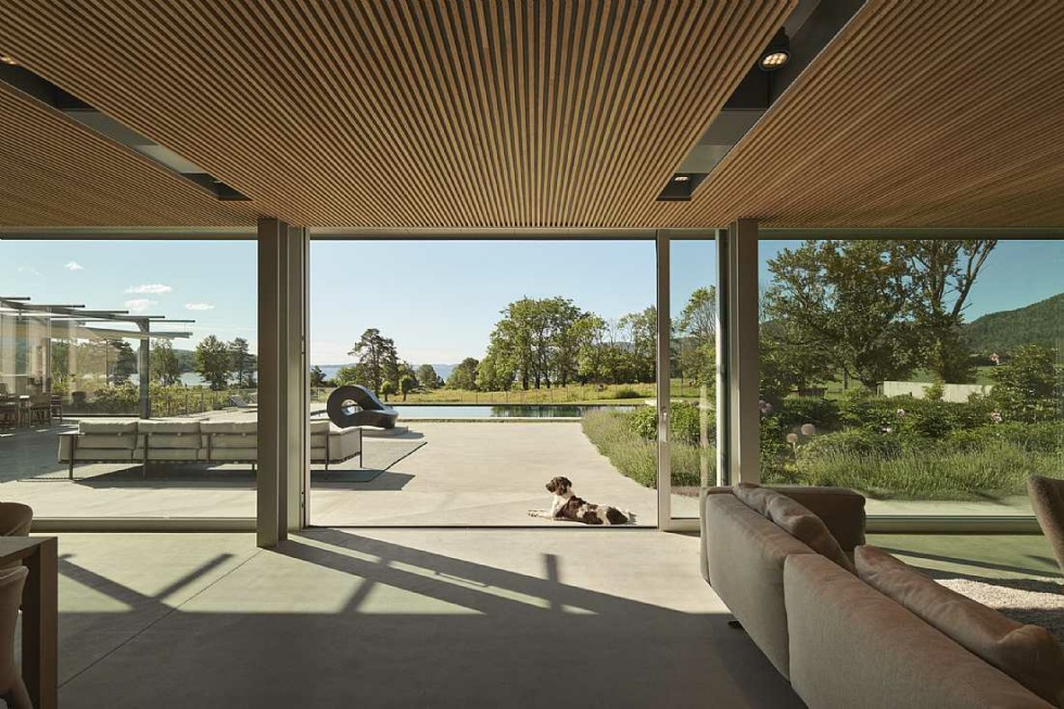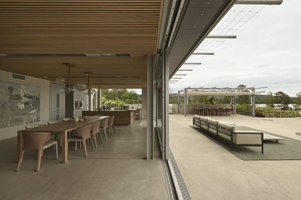 Another would entail taking a small staircase from the lush upper terrace which also forms the roof of the Villa Aa. We can spot several small structures which appear to be skylights. Glass walls allow natural light to fill the interior and also gives those inside a majestic view of the Oslo Fjord.