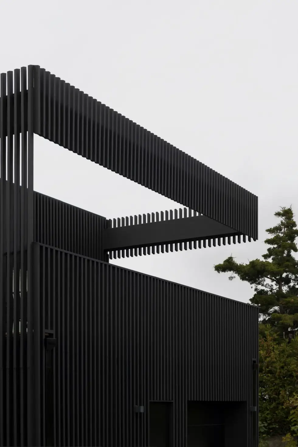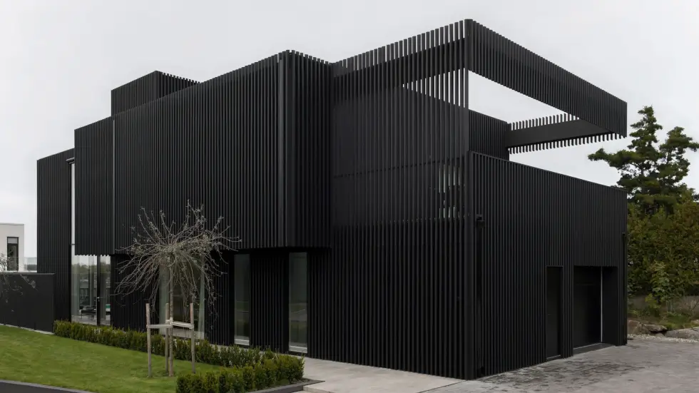 Penned by Bornstein Lyckefors, we have a geometric plan with a unique façade. It is located in an upscale neighborhood in Gothenburg. The studio wants to take advantage of the property’s surroundings. Hence, they position its layout in an east-west orientation to frame the waters visible from the promontory.