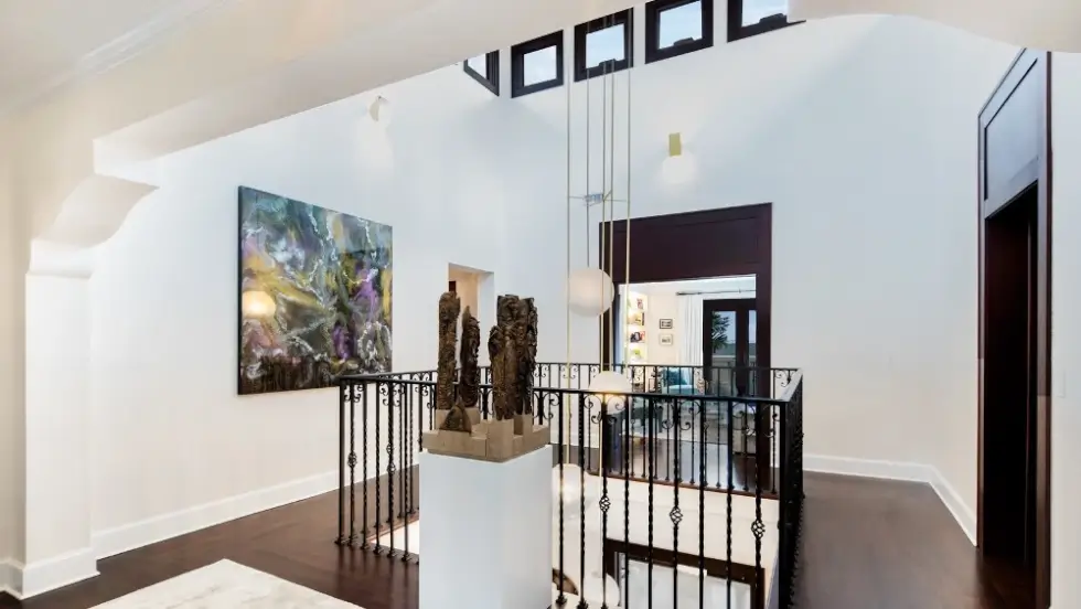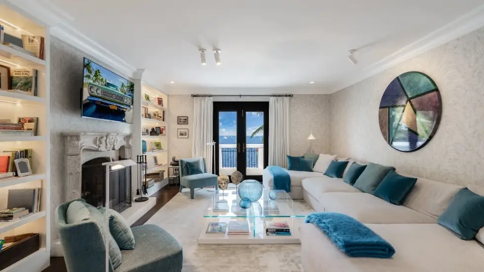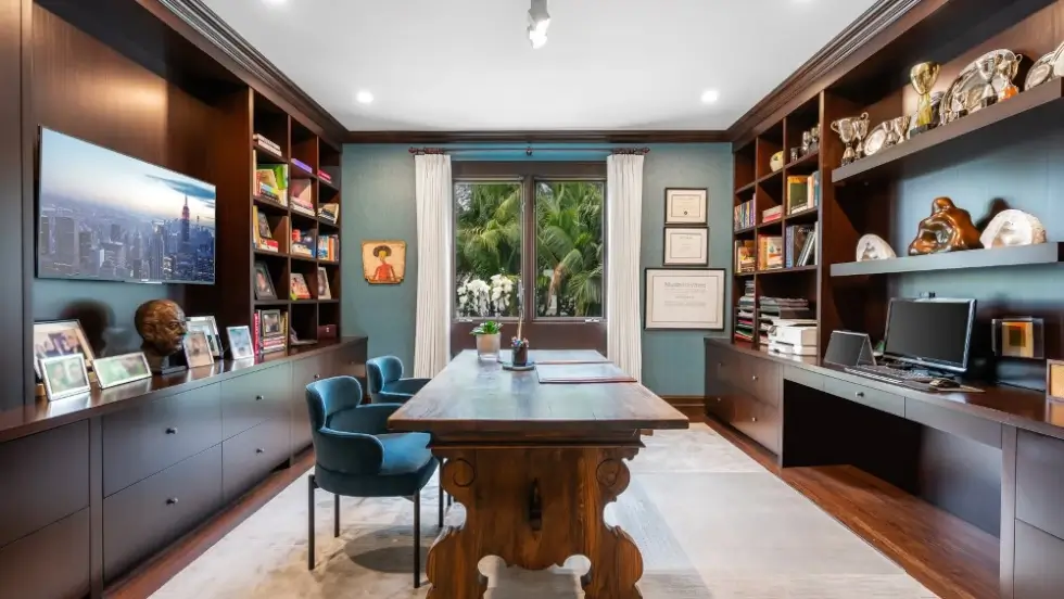 Moreover, every room in Villa Positano looks out to the sparkling waters of Biscayne Bay. The views even go as far as downtown Miami and the nearby marina. The bay is also visible from the landscaped backyard, where there are sheltered porches, courtyards, a gazebo, and a large pool. The property boasts a chef’s kitchen, a gym, an elevator, and indoor and outdoor dining.