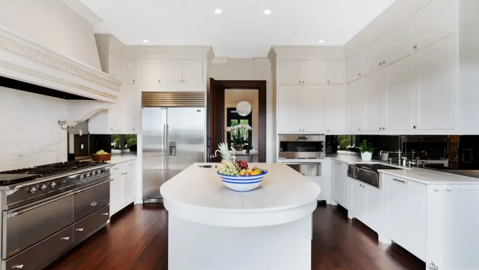 Villa Positano boasts 10,220-square-foot of space, five bedrooms, six bathrooms, and three levels of terraces. Owner and developer Ernst Swietelsky wanted to recreate his family’s country villa on a lake south of Salzburg, Austria. Thus, he turned to architects Portuondo and Perotti to build this magnificent home at 3080 Munroe Drive.