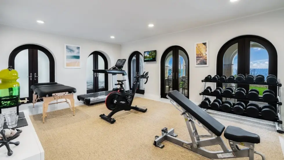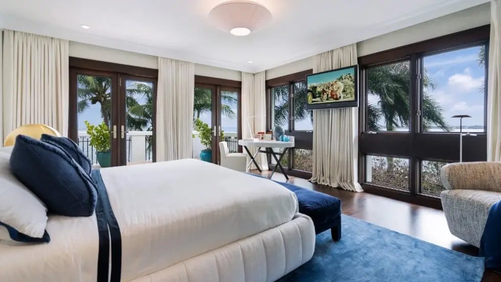 The property has both European and Caribbean touches including the 30-feet coffered ceilings, a Romanesque-style atrium, and Jerusalem stone floors in all the living areas. There are also mahogany floors in the bedrooms and offices. Meanwhile, 12-foot-wide terraces for each level and floor-to-ceiling windows and doors add a Caribbean flair. The glazed walls also give future owners uninterrupted views of the amazing scenery.