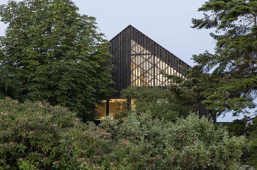 Other aesthetic elements you see outside are the latticework and vertical grilles on some surfaces. The owners say, “the grid was an experiment that proved to work well as extra protection against solar radiation on the façade and as a protective layer against the drifting rain on the west coast.”