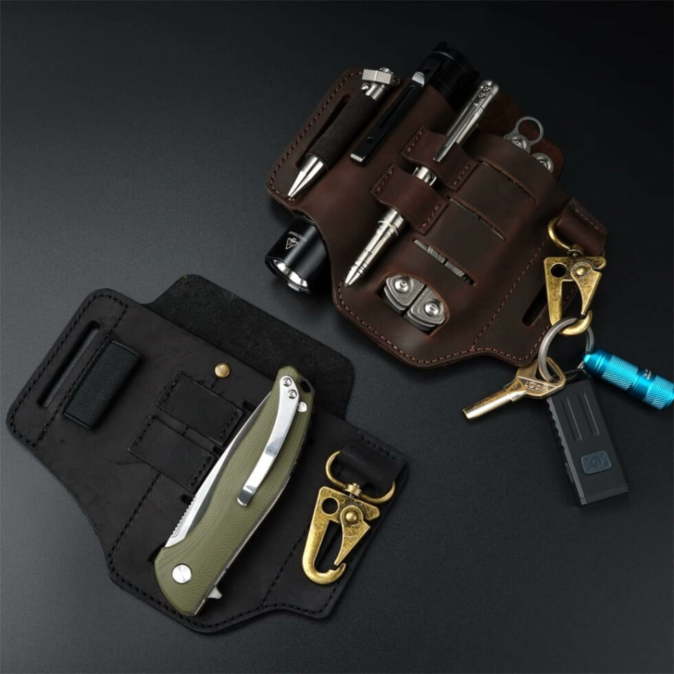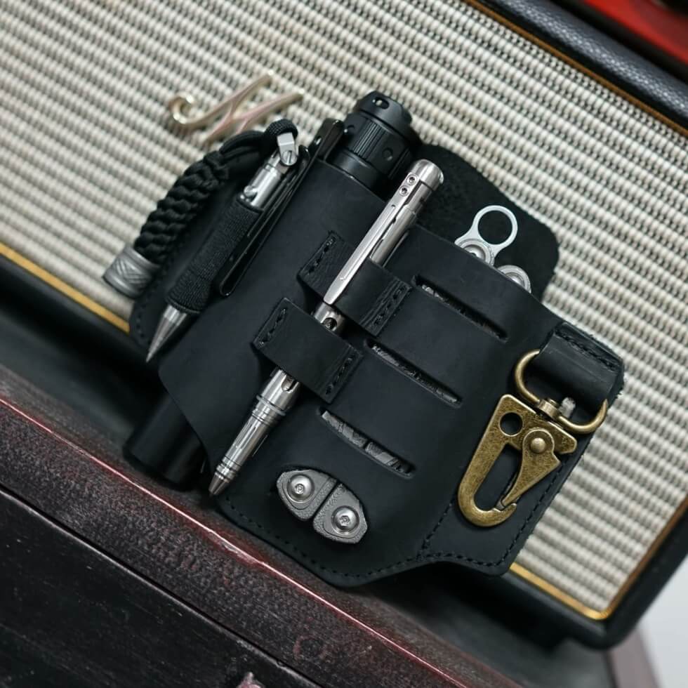 The Viperade PJ16 EDC Leather Sheath is your on-the-go tool carrier as it features a double belt loop style to fit a belt width of less than 1.77″. It even comes with a 360°rotatory vintage brass keychain to hold your most-used keys from any angle. Then there’s an expanded flashlight holster that can fit flashlights with a diameter of less than 1.2″ (it can hold the compact Olight Warrior Mini 2).