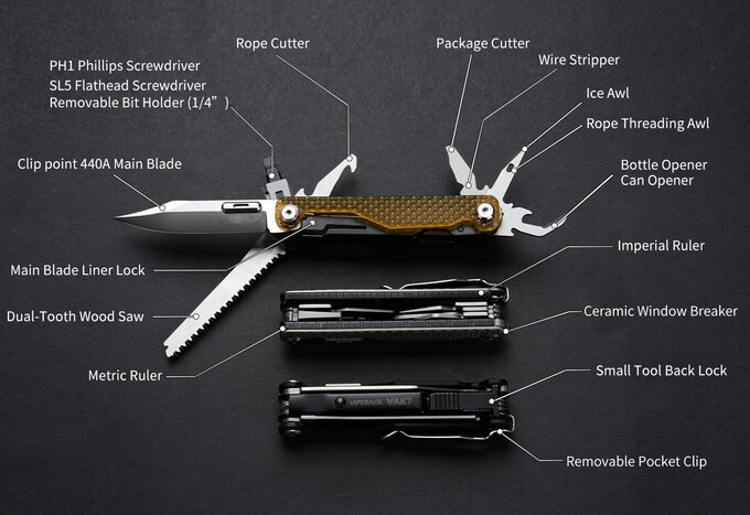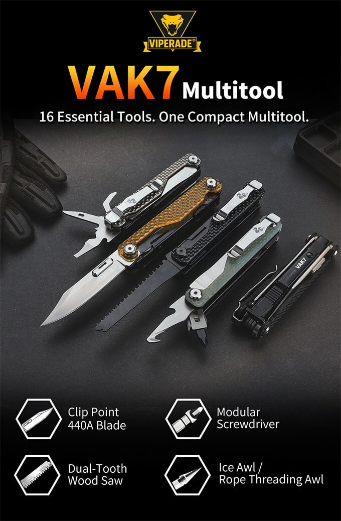 Hong Kong-based Viperade built its reputation building practical gear for the outdoor market, from tactical clothing to everyday carry tools. Its latest drop, the VAK7, is a pocketable utility tool that packs an amazing 16 functions.