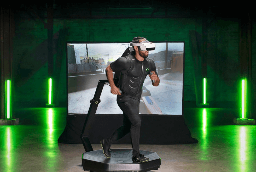 Instead of a barrier to keep players safely within the playing surface, the Omni one features a harness. The vest keeps your torso stationary, but your legs are free to move about. In essence, you can probably call it an omnidirectional VR treadmill of sorts. The package also includes a standalone VR headset and a first-party game store for full compatibility.