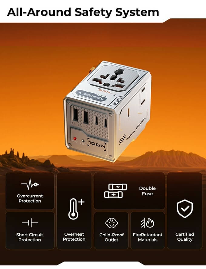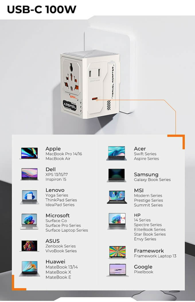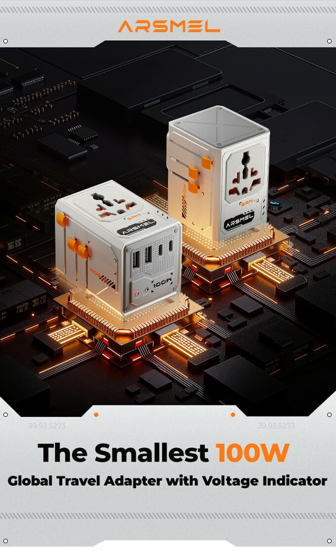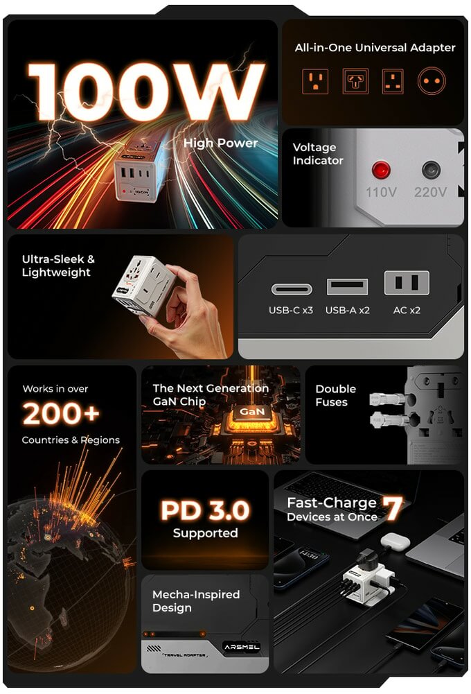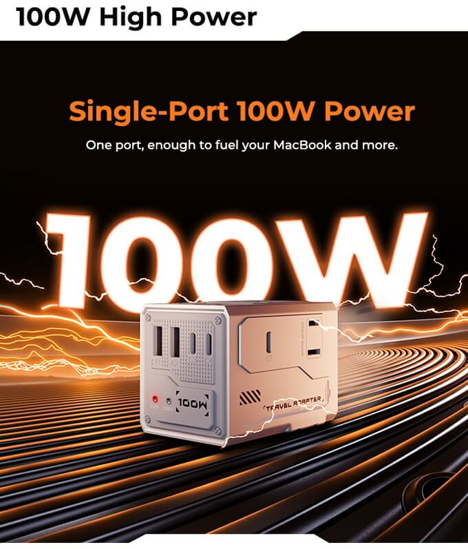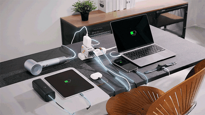It’s an all-in-one travel adapter featuring advanced GaN technology that delivers up to 100W of efficient power. It ensures rapid and reliable charging so you can focus on what matters most. Designed for the on-the-go lifestyle, it is lighter than an iPhone at 188g and smaller than a standard credit card.