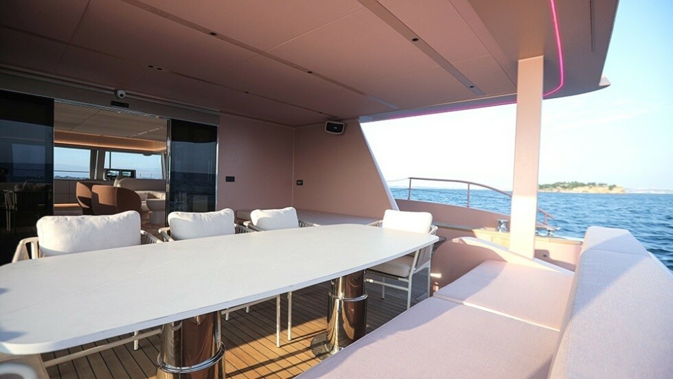 Reports confirm this catamaran is the fourth and last in the series as the company will no longer accept commissions for the 80 moving forward. Hence, it’s somewhat fitting that they are closing out this chapter with a pink luxury vessel guaranteed to leave a lasting impact on whoever catches sight of it out at sea.