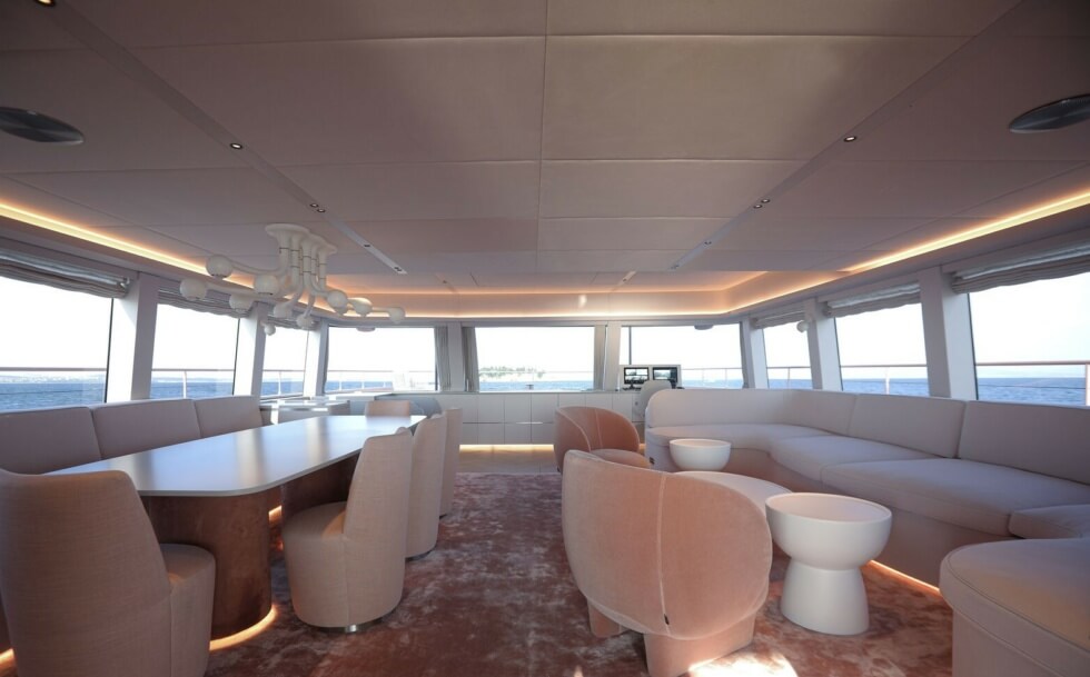 And here we thought the yachting scene was already out of surprises for the remainder of 2023. In stark contrast to the stealthy third hull, the bright rosy exterior is sure to pop against the natural shades of the waters and sky surrounding it. VisionF Yachts did not drop the name, but the client is in the tech business.