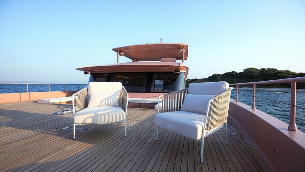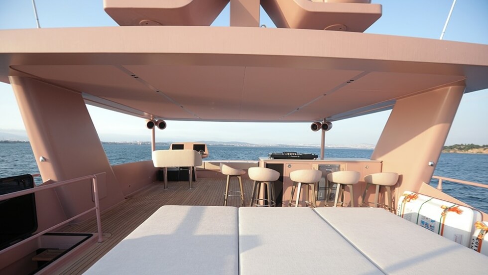 We can’t say for certain if this was a personal preference or perhaps a publicity stunt tied to the overwhelmingly successful Barbie movie which came out several months ago. According to the VisionF Yachts executive Ali Tanir, “I am very happy to take part even at the delivery stage of this project, she is unique in many ways.”