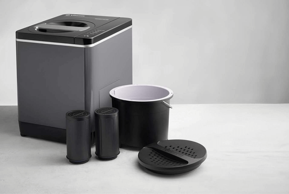 No worries about foul odors lingering thanks to the carbon filter lid of the FoodCycler FC-50. Vitamix says that its silent operation makes it the ideal food waste disposal alternative. Once the contents are empty, just put the removable waste bucket in the dishwasher and it’s ready for action once the cycle is complete.