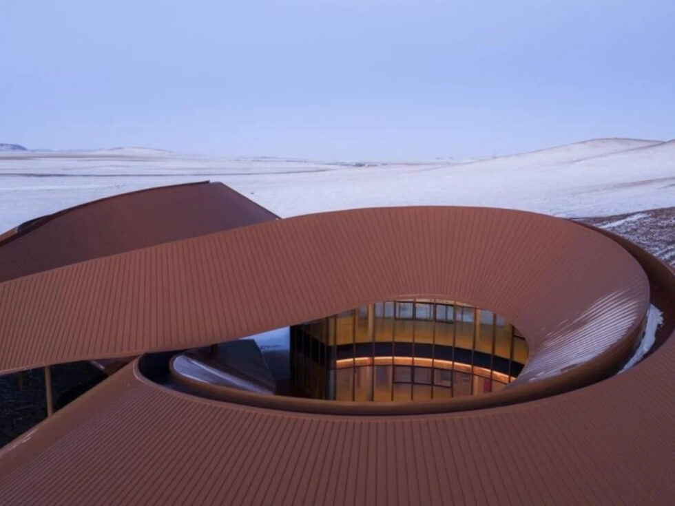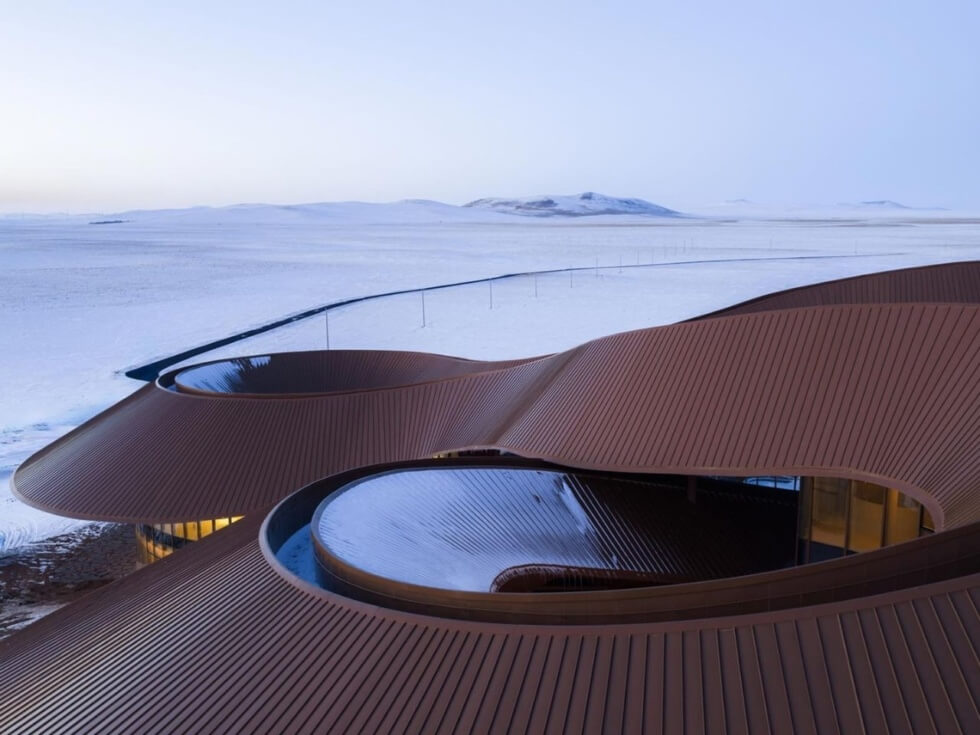 PLAT ASIA completed the Volcano In Visitor Center at the end of 2025. It is part of a major project dubbed the Baiyinkulun Steppe and Volcano Tourism Resort. With around 108 volcanoes that span the area and a diverse ecosystem, the building is an essential source of information about the location it caters to.