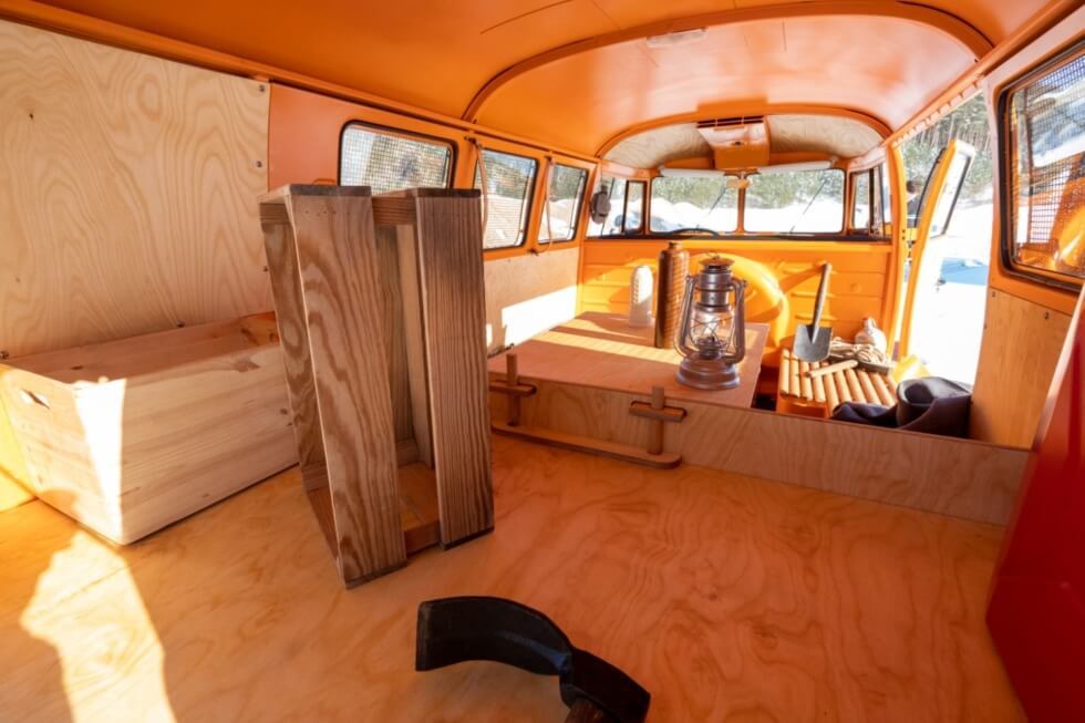The first two were for steering, while the remaining duo are outfitted with a chain drive system. Not only could it handle snow but climb steep inclines as well. Its odd configuration provides exceptional maneuverability over almost any type of terrain. Thus, we can call this VW microbus an overlanding platform of its time.