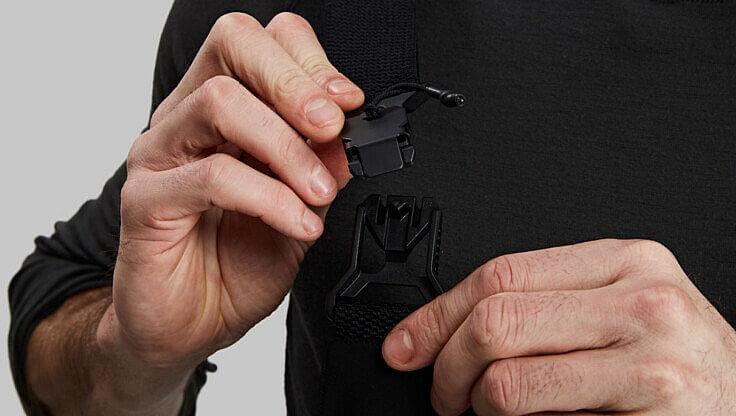The pants come with a high-waist, removable four-way stretch bib made with 66% nylon and 34% elastane. It keeps out the cold and snow and provides extra protection when you need to open up your jacket as it uses the same materials found in the pants. The bib is light and breathable and fastens on the waist with a central zipper and metal press snap fasteners. The bib comes with adjustable shoulder straps built with military-grade belt tape and quick-release FIDLOCK magnetic fasteners.