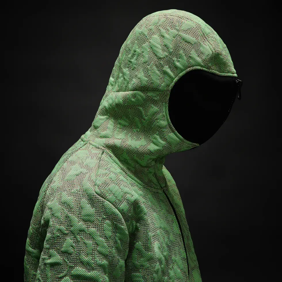 Vollebak is back with another revolutionary piece of apparel that blurs the line between technology and fashion. Aptly named Alien Hoodie, this jacket pays homage to the sand dunes of Mars and has a black mesh visor that gives the overall appearance of an extra-terrestrial being when worn zipped up close and hood up.