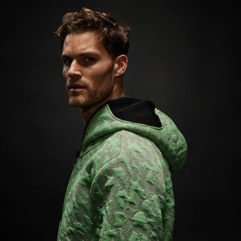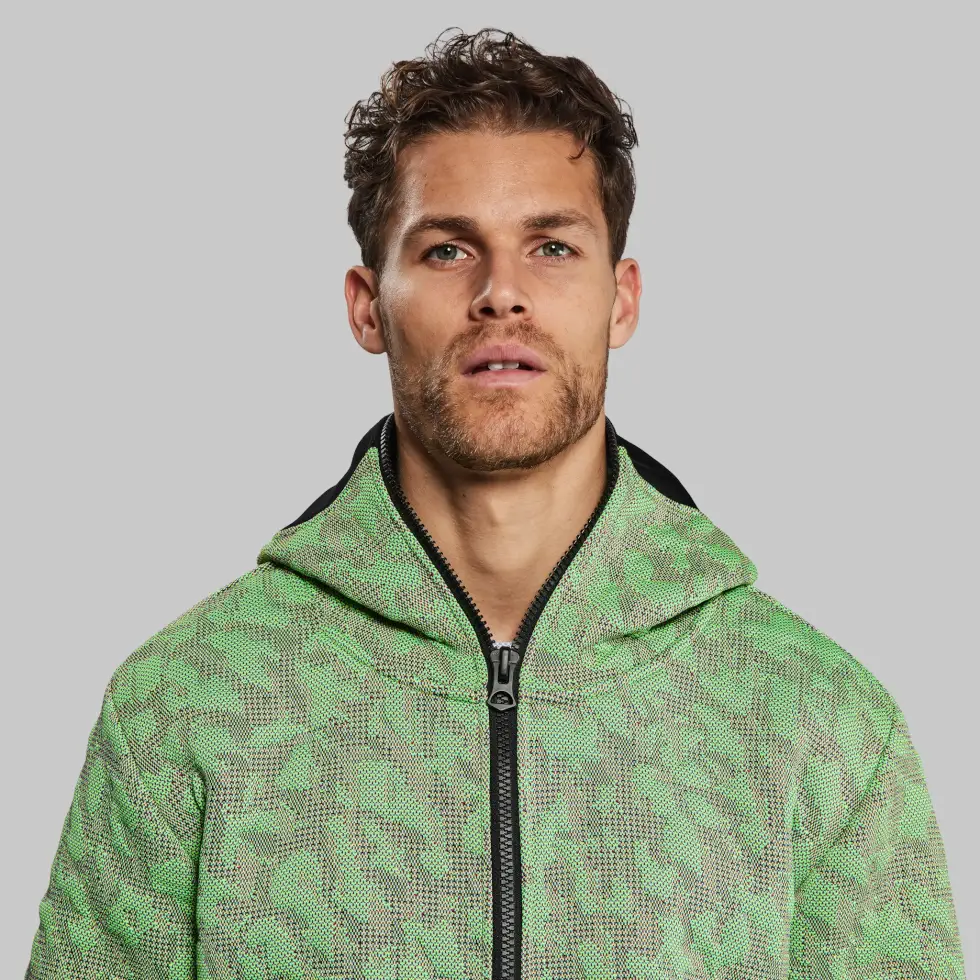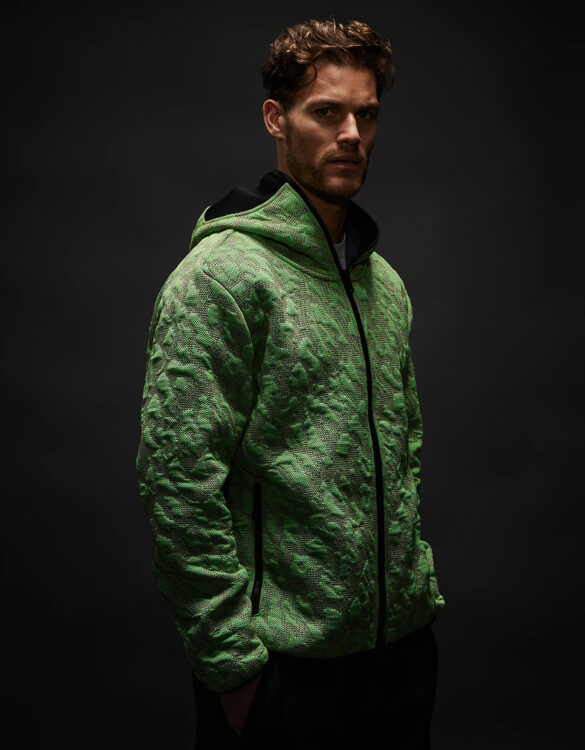 Vollebak’s Alien Hoodie also features elasticated drawcord adjusters for tightening and the cuffs and hem are bound and elasticated. It uses heavy-duty, two-way zippers and the hoodie itself is breathable, insulating, and high wicking. As for storage, it has two large, zipped exterior pockets and two more pockets on each side of the inside of the hoodie. Best of all, this jacket is produced using 40% fewer greenhouse gases, 30% less water, and nearly 27% less power per kilogram than other conventionally made materials.