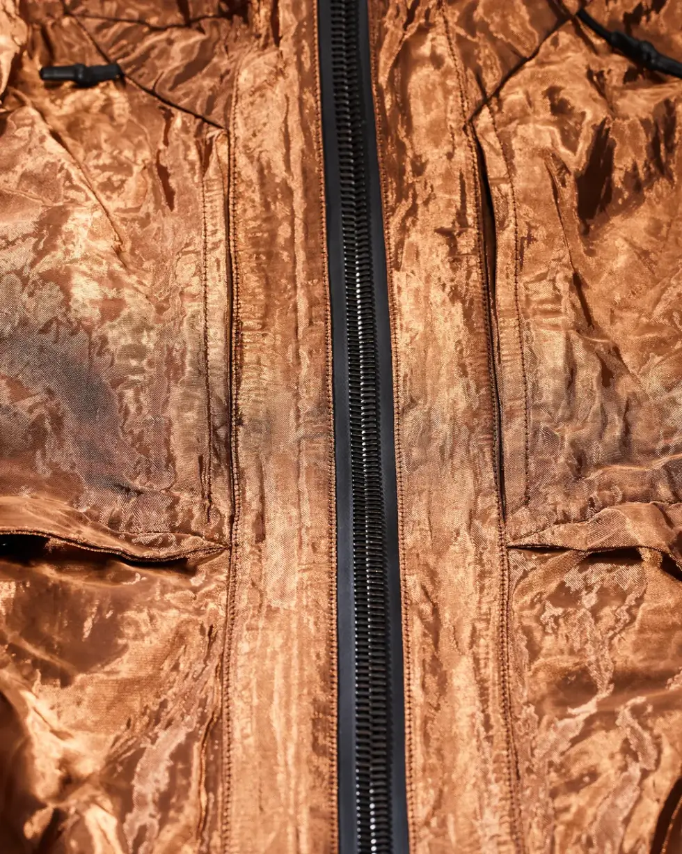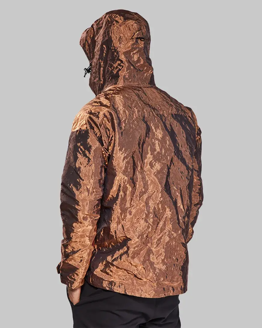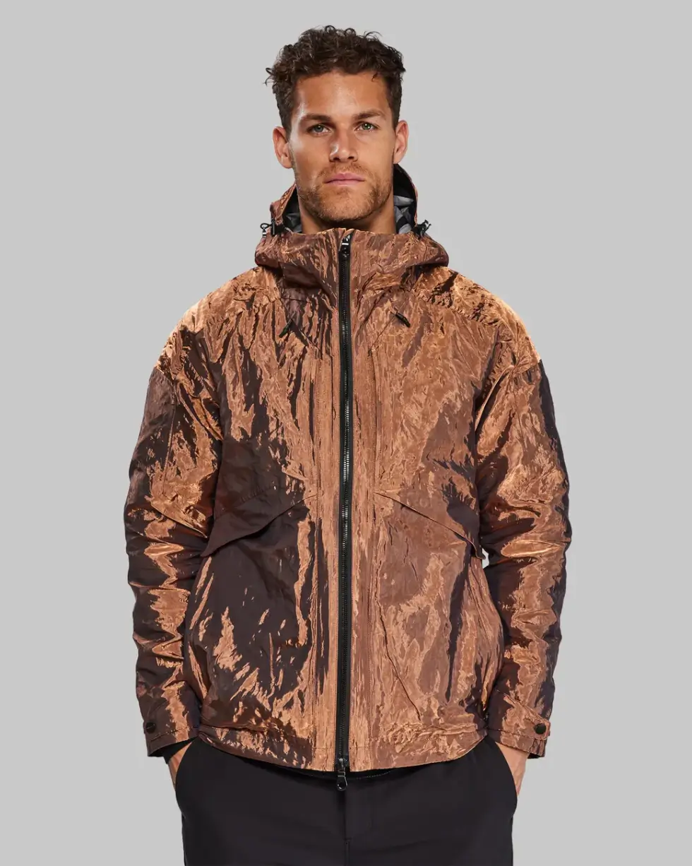 Then the strands are heated to make them malleable and applied with very thin coats of lacquer to protect the copper from corrosion. They then go through a 6-day curing process which involves weaving the yarn on rapier weaving looms before they are scoured, heat-set, and dried. The Vollebak Full Metal Jacket then appears in a stylishly unique and fashion forward silhouette with its metallic and wrinkly appearance.
