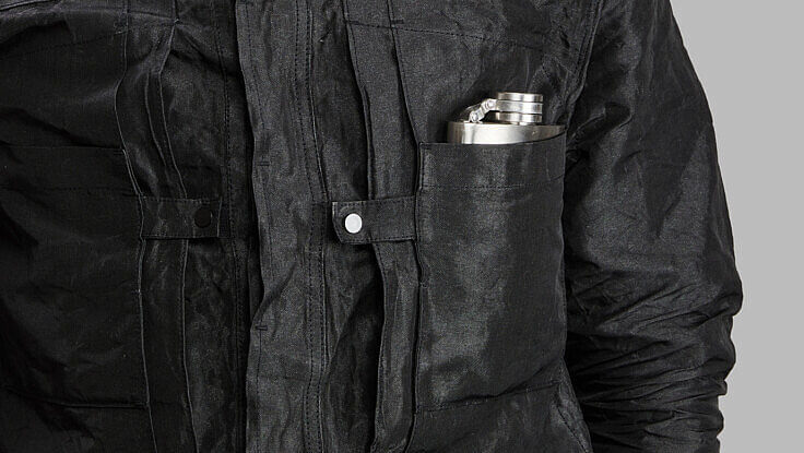 This jacket is guaranteed to last for a lifetime thanks to its tough construction. It uses Dyneema Black fiber, a plastic called ultra-high-molecular-weight polyethylene. It is said to be 15 times stronger than steel and 40% stronger than high-strength aramid fibers. The construction makes it highly rip and abrasion-resistant. The material harks back to the components of body armor, anti-ballistic vehicle armor, and tie-down ropes used for oil rigs. The fabric increases in strength under chilly conditions which makes it a great winter jacket.