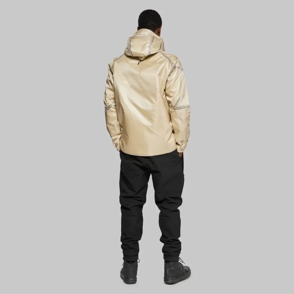 Aside from its fabric, Vollebak’s Martian Aerogel Jacket also draws inspiration from 1950s NASA spacesuits for its design. It has a subtle metallic shine and a contrasting black seam taping and zigzag stitching. It also comes with a transparent finish for a glimpse into the laser-drilled aerogel technology underneath. Meanwhile, five zipped pockets offer storage for your EDC. There are two large side pockets with storm flaps, two chest pockets, and an interior left pocket.