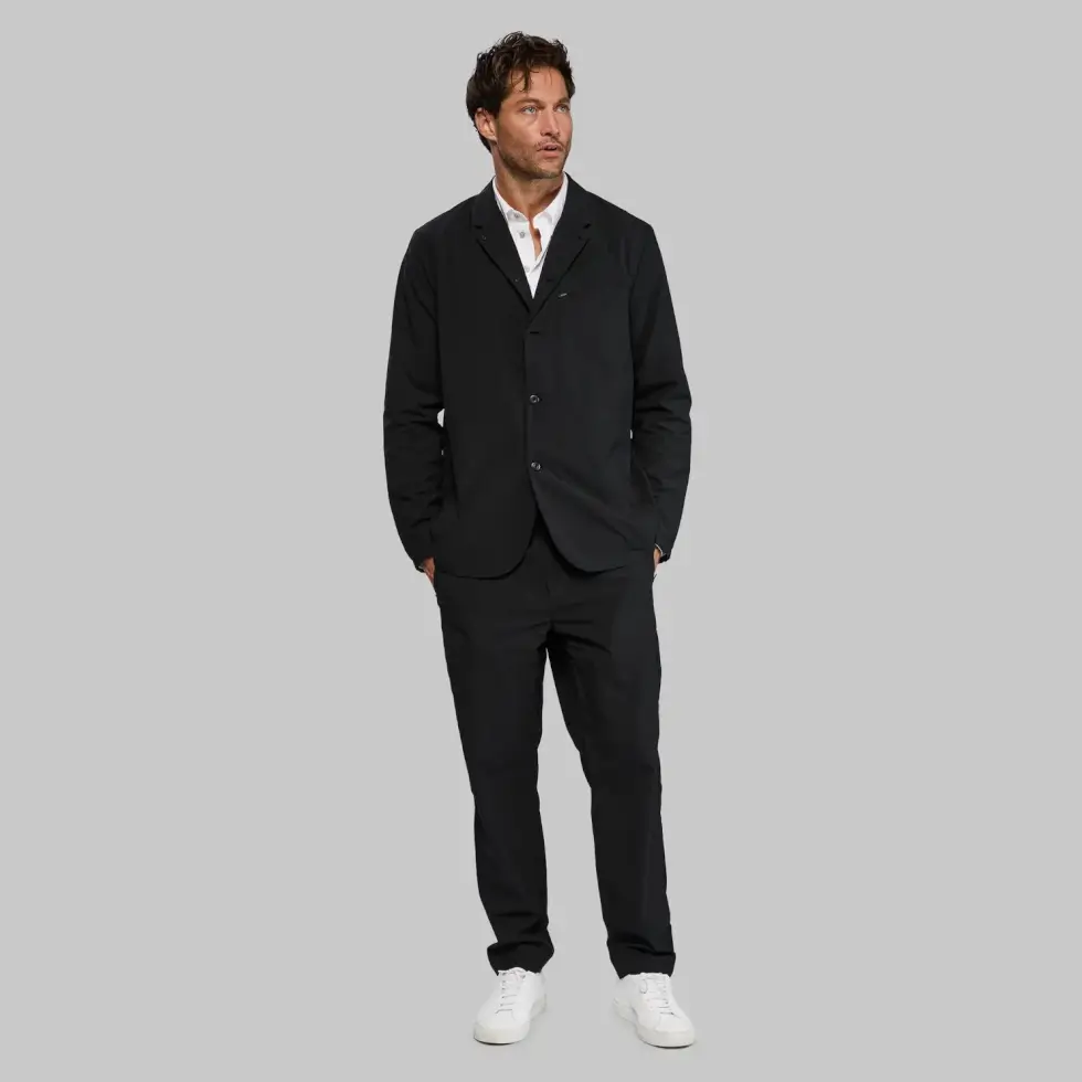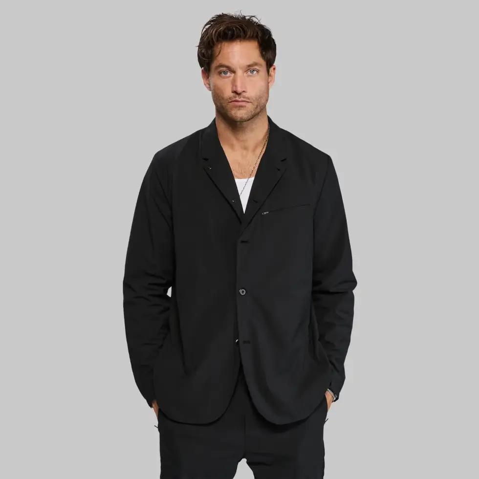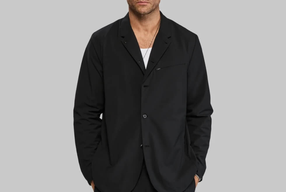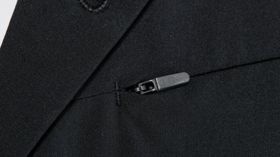 Vollebak’s Planet Earth Suit 2 features a convertible collar. You can wear it as a normal blazer with the lapels down or as a stand collar using hidden snap collar closures. Enhancing its stylish look are the metal snap fastening at the cuffs and the sustainable reinforced bioresin button closure.