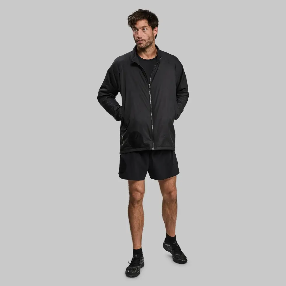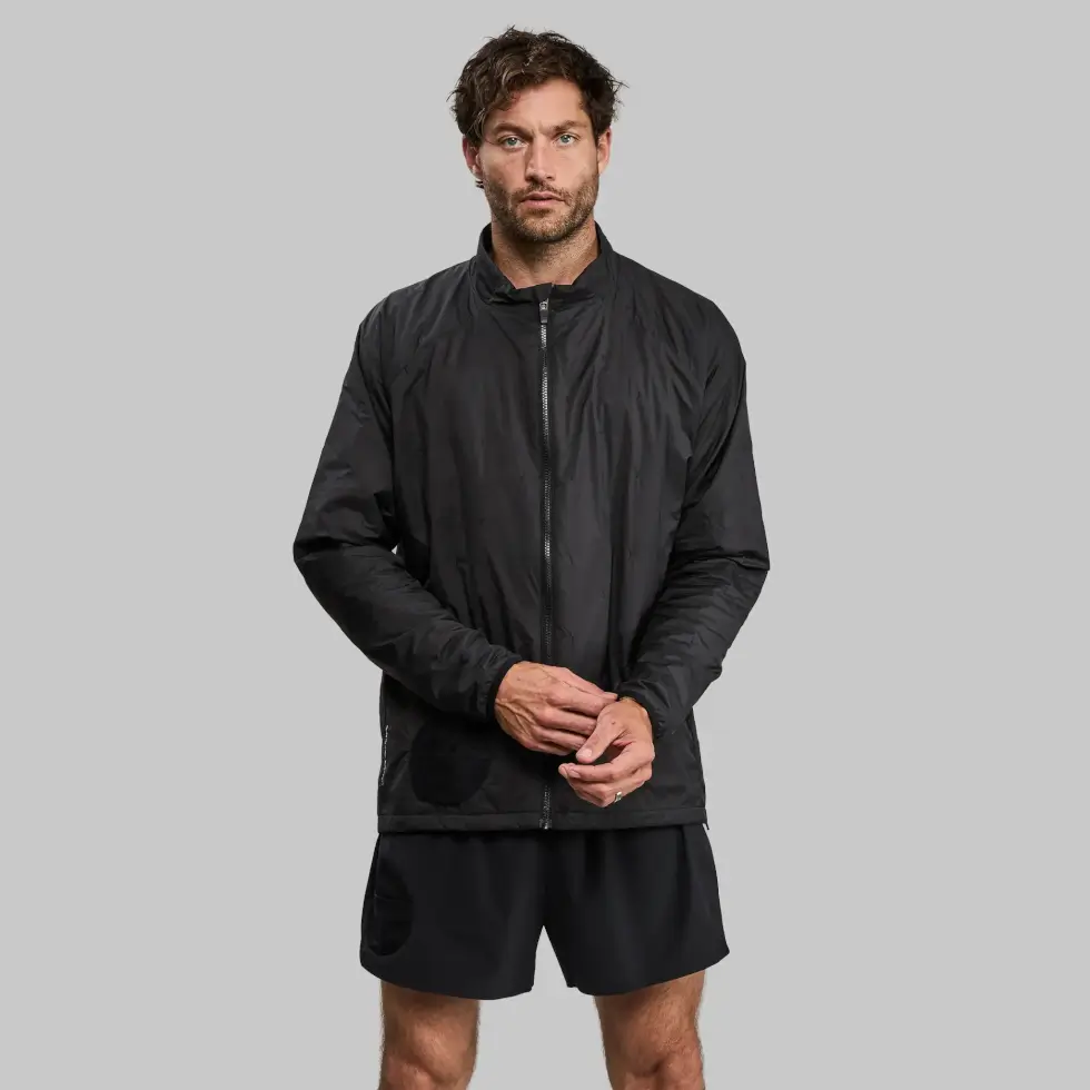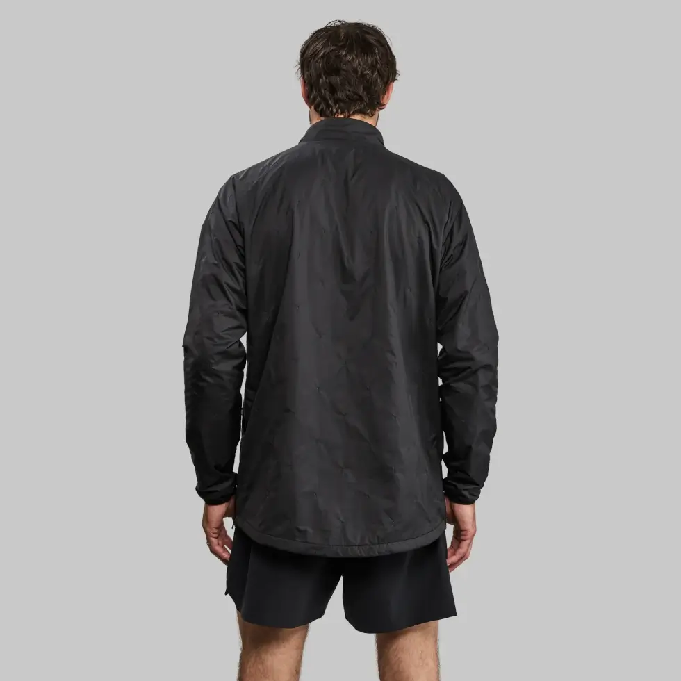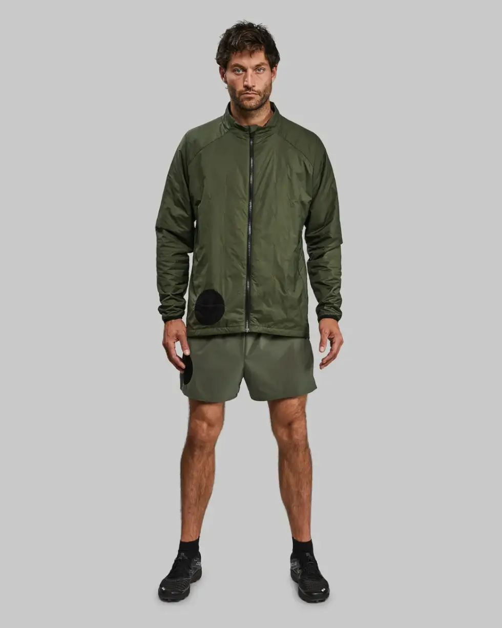 This jacket is for 5km runs or five days straight of running. It uses a super-compact synthetic insulation made from 50% recycled PET bottles and 50% polyester. Compressed to a third of its regular size, the materials take up 70% less space. But retains 80% of its thermal properties because they are hollow air pockets. Instead of large puffy baffles to keep the insulation intact, it uses continuous sheets of insulation supported by stitched bartacks to reduce weight and bulk.