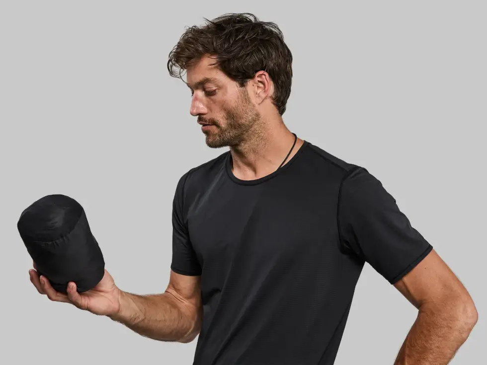 Vollebak’s Race to Zero Puffer boasts a packable system. A zero-shaped pocket at the bottom serves as a storage pouch when turned inside out. It’s where you push the jacket into until it packs small. Once done, you can stuff the jacket inside your bag or hang it via an integrated bungee hanging loop.
