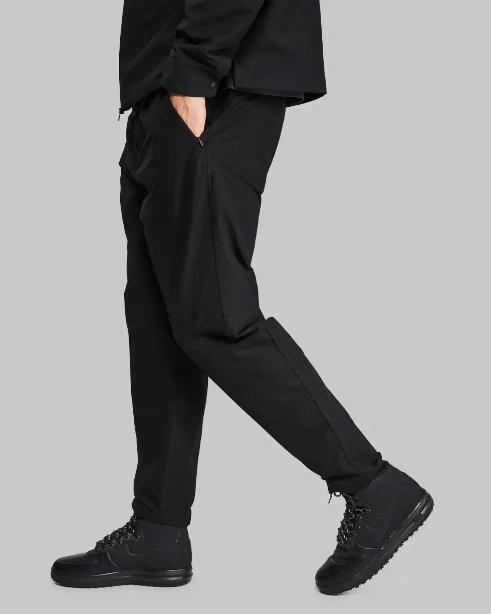 UHMWPE is many times stronger than steel yet very lightweight it floats on water. Its use on garments isn’t novel — it’s in bulletproof vests, anti-ballistic vehicle armor, and more — and used on industrial machines and spacecrafts. It’s trusted where failure isn’t an option and Vollebak wove these pants with a protective grid built with two types of UHMWPE.
