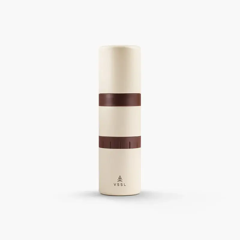 VSSL’s Nest Pour Over Coffee Kit minimizes heat transfer and condensation. This way, it keeps your coffee stay hot or your cold drinks cool for hours. Its integrated components make it intuitive and user friendly, ideal for on-the-go coffee brewing. As a whole, it weighs just 21.4 oz. and measures 11.5” tall with a 3.4” diameter. Plus, it’s easy to clean with just soap and water. It’s available in all black and cream with brown accents colors.