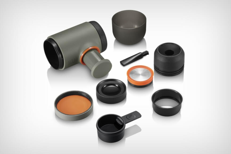 Pumping on it builds up the pressure to make espresso while the included lid serves as an espresso cup. The brewing process takes just under a minute. Aside from being efficient and compact, the Minipresso GR2 is also made sustainable. Its outer shell is made from a new wheat-composite polymer as opposed to traditional petrochemical-based plastics. Likewise, all text and logos are now integrated into parts, thus saving energy and resources.