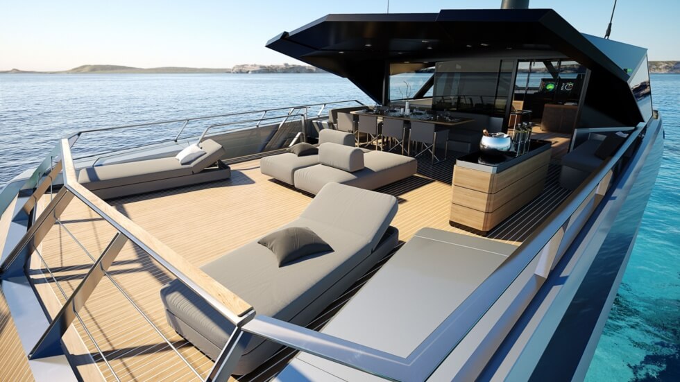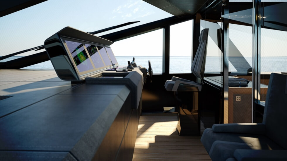 The four cabins of the WHY200 can accommodate up to 8 guests, while a crew of 5 is enough to man the vessel. Propulsion comes from four Volvo Penta D-13 IPS 1350 engines at 1,000 horsepower each. The range is 390 nautical miles with a top cruising speed of 21 knots.