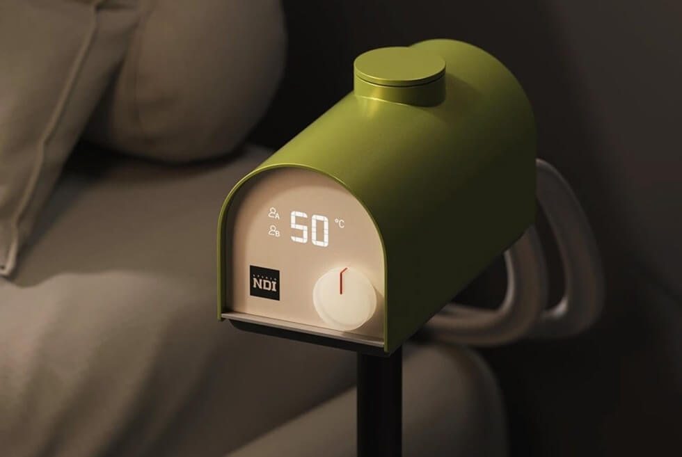 Studio NDI aims to replace traditional electric blankets with a safer alternative that utilizes hydraulic warming technology called Warmflow Messenger. Designed as an emotionally viable option, it presents none of the common concerns associated with using an electric blanket, like electromagnetic radiation, dryness, overheating, and even short circuits.