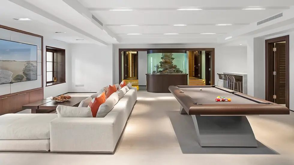 This Water Mill estate in the Hamptons is set on a private peninsula on Mecox Bay. It’s a 28,000 sq. ft property that sits on 12.2 acres of land. It has plenty to offer both inside and outside but the main attraction is the massive 750-gallon shark tank found in the entertainment room, which also hosts a wet bar and an arcade.