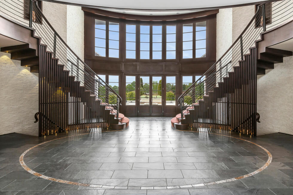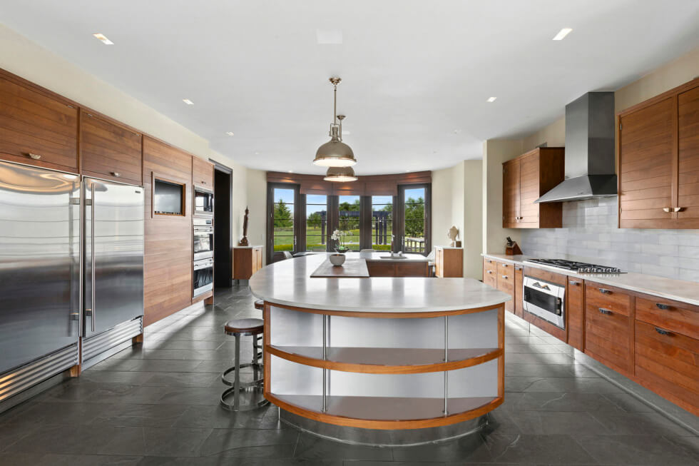 The Water Mill Estate even has a 350-bottle wine cellar, a professional gym, and a game room with billiards. This is a three-level home that opens to a grand foyer with dual staircases. On the first floor is a well-equipped eat-in kitchen equipped with stainless steel appliances and marble countertops and accompanied by a formal dining room that seats ten.